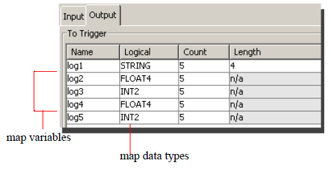 当传输映射为双向时,触发器预计从企业系统查询到的数据将从 Output(输出)选项卡上的映射变量发送至该映射。