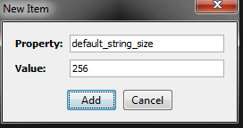 - 在 Property(属性)参数中输入属性的名称 default_string_size。在 Value(值)参数中输入该属性的值。