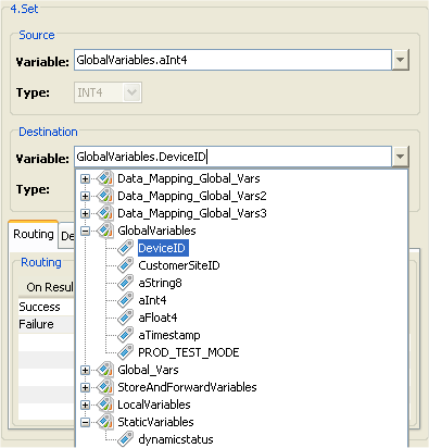 - Source(源)变量 aInt4 在名为 GlobalVariables 的设备中为整数 (INT4)