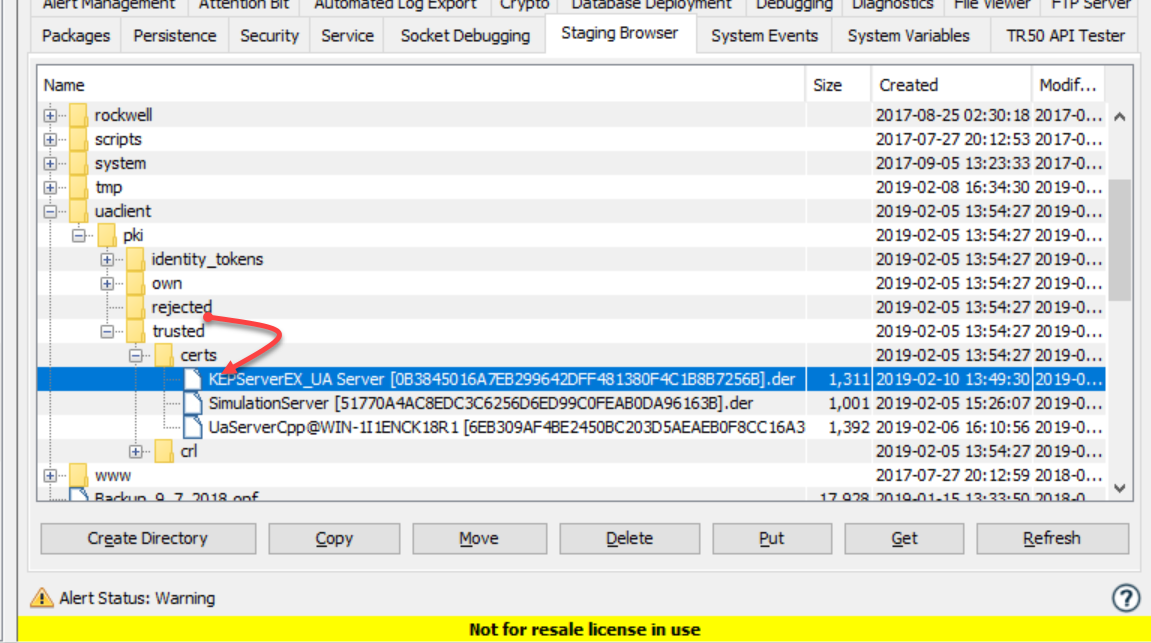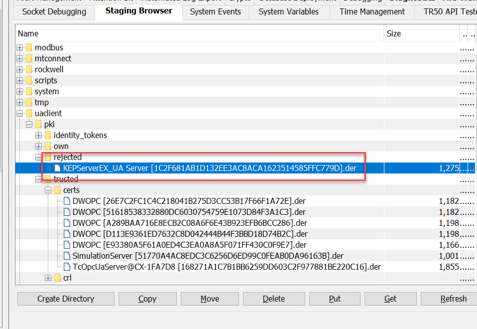 - 将文件移动到 \staging\uaclient\pki\trusted\certs。