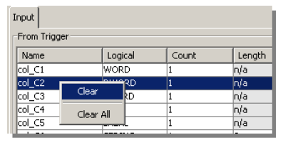 - 在 Input(输入)选项卡中,选择要删除的映射变量,显示其弹出菜单,然后单击 Clear(清除)。