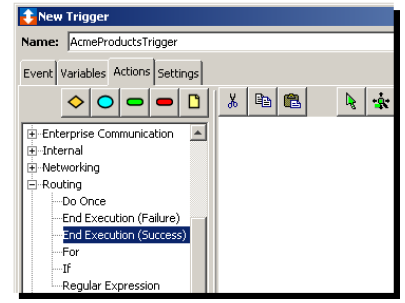 End Execution (Success)(结束执行(成功))动作为使用画布编辑器定义的触发器提供结束执行成功路径。