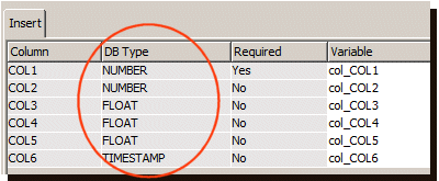 在以下示例中,DB Type(数据库类型)列显示了 Oracle 的数据类型。