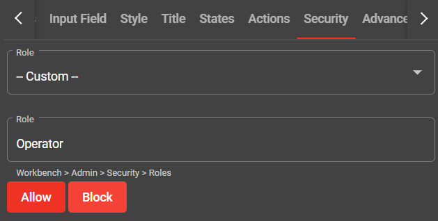 (安全)选项卡可根据 Roles(角色)为小组件设置安全性。要提供或拒绝访问: