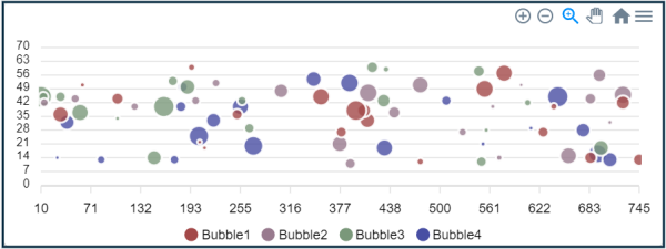 气泡图小组件是一个数值 XY 图表,用于分析不同变量值之间的相关性。