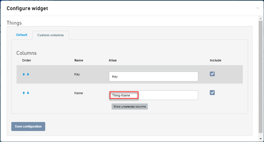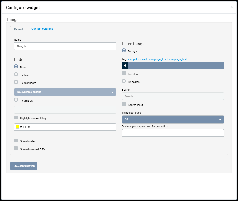 | Custom columns(自定义列) | 指定小组件中可显示的列的列表。