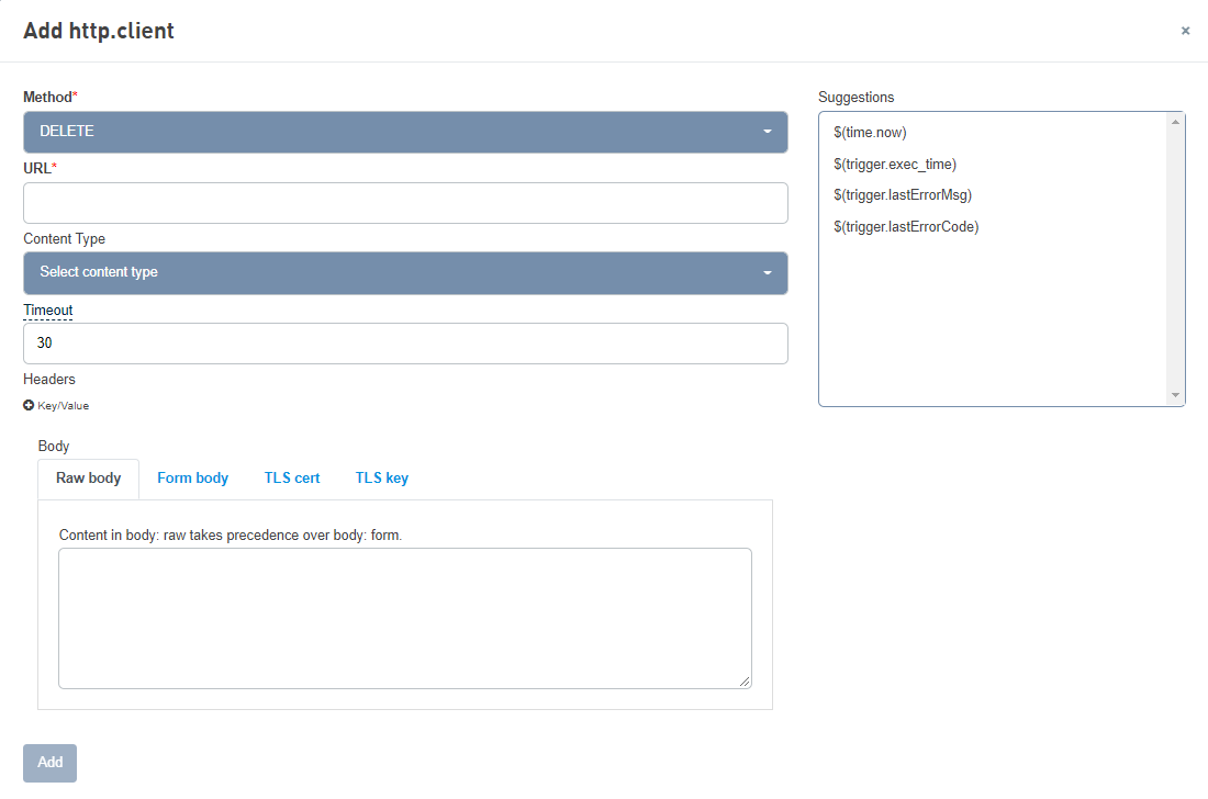 此触发器动作将通过 GET、POST、PUT 或 DELETE 对指定的服务器执行 HTTP 请求。